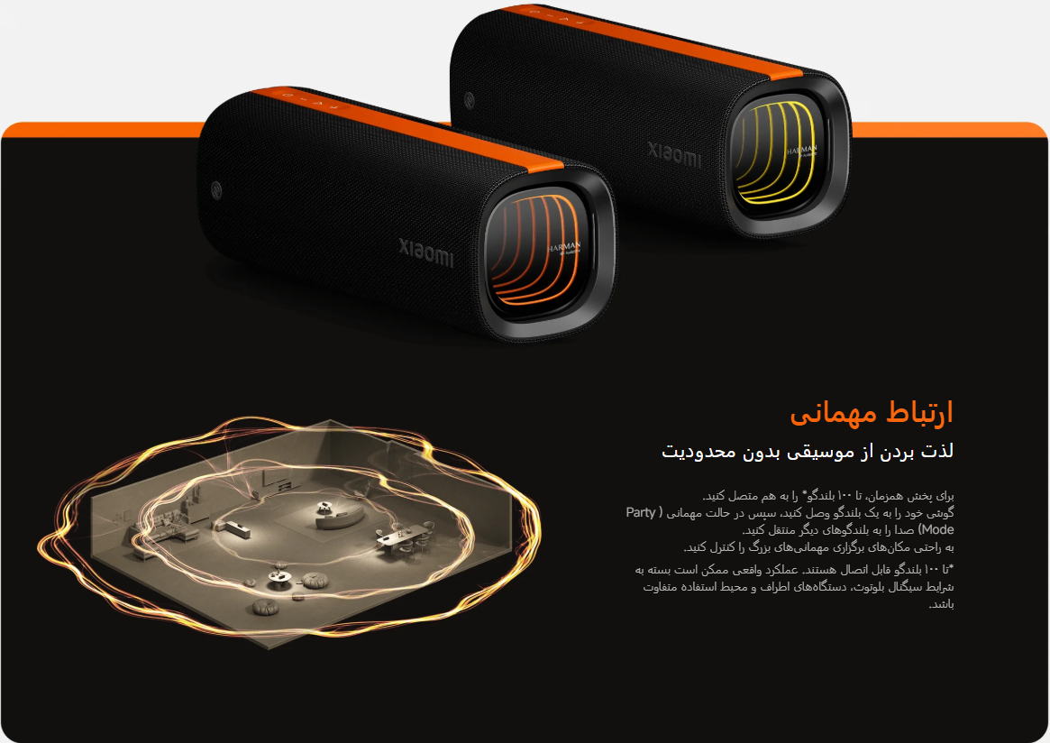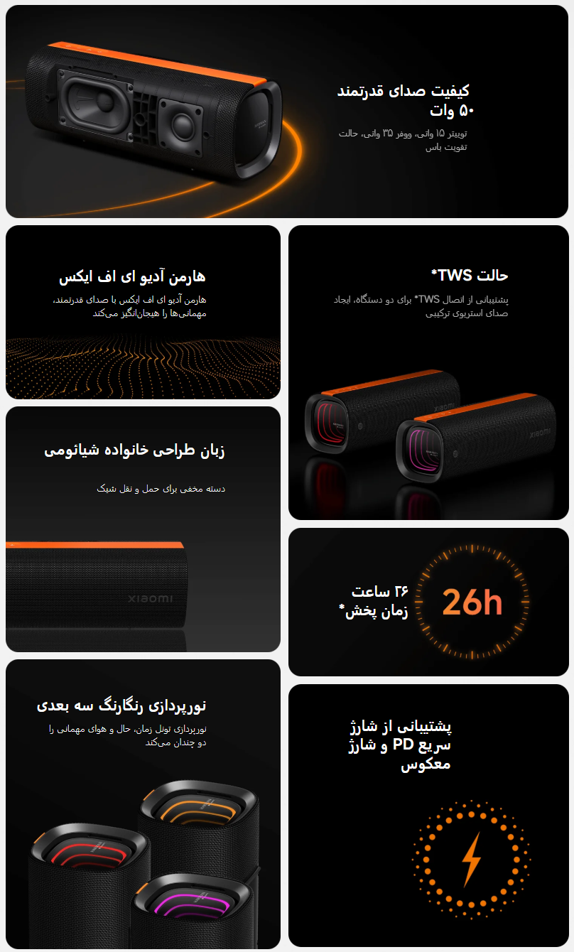 Xiaomi Sound Party اسپیکر بلوتوثی ۵۰ وات از شیائومی با همکاری هارمن است که با طراحی مقاوم، نورپردازی جذاب و عمر باتری بالا، تجربه شنیداری متفاوتی را ارائه میدهد. این محصول برای مهمانیها، سفرها و استفاده در فضای باز طراحی شده است. این اسپیکر در سال ۲۰۲۵ معرفی شد و به سرعت جایگاه خوبی در بازار پیدا کرد. ترکیب امکانات و قیمت رقابتی آن را به انتخابی محبوب در میان کاربران جوان و فعال تبدیل کرده است