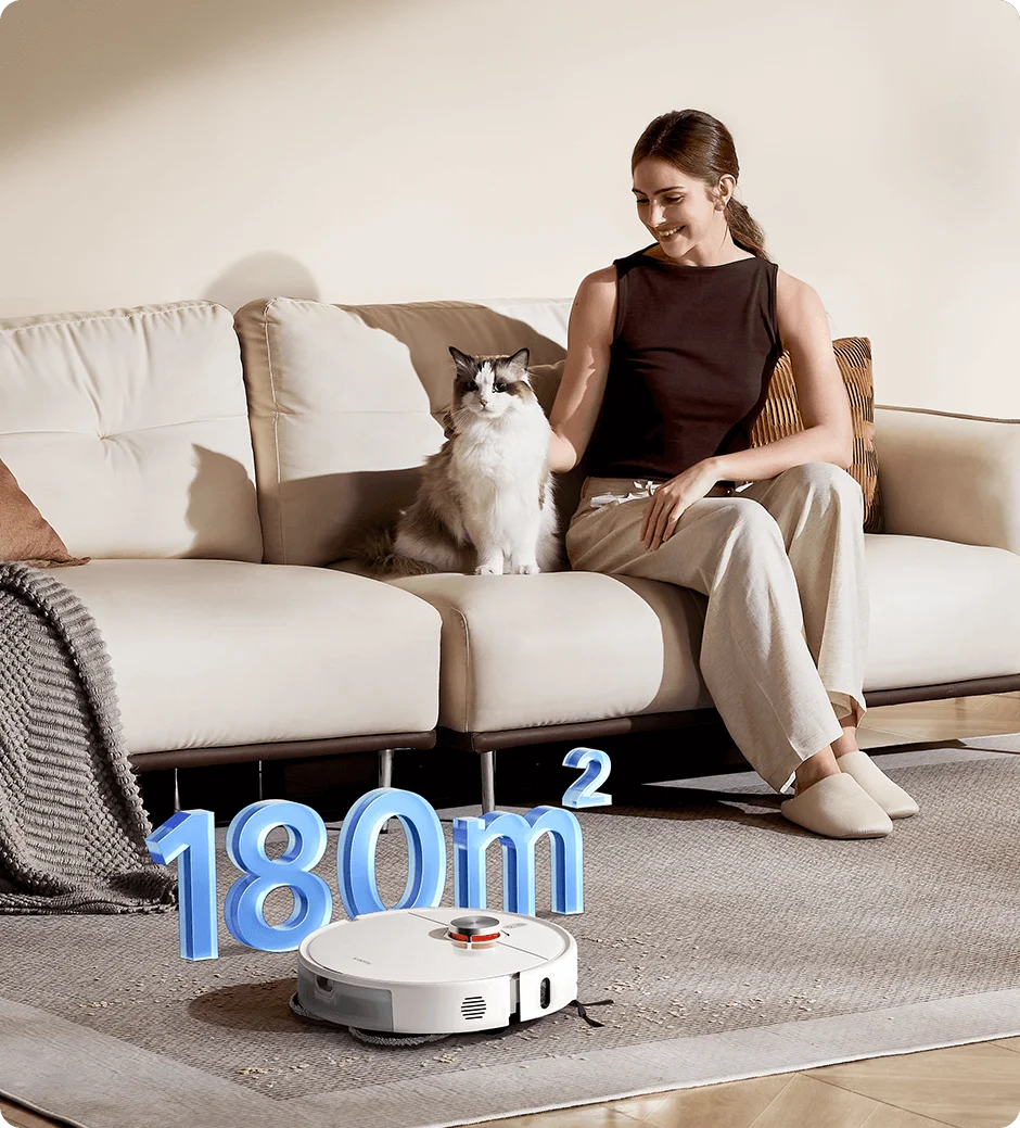 جارو رباتیک شیائومی S40 Pro با باتری قدرتمند ۵۲۰۰ میلی‌آمپر ساعتی طراحی شده که با یک‌بار شارژ، توانایی نظافت کامل خانه‌ای تا ۱۸۰ متر مربع را دارد. این ویژگی به کاربران اجازه می‌دهد بدون نگرانی از تمام شدن شارژ، فرآیند جاروکشی و تی‌کشی را در یک مرحله انجام دهند. علاوه بر باتری، دستگاه دارای مخزن آب ۳۱۰ میلی‌لیتری و مخزن زباله ۴۳۰ میلی‌لیتری است که امکان تی‌کشی مداوم با رطوبت مناسب و جمع‌آوری حجم بالایی از گرد و غبار را فراهم می‌کند. این ظرفیت‌ها باعث می‌شوند نیازی به تخلیه یا پر کردن مکرر در طول هفته نباشد؛ کافی است مخزن زباله را آخر هفته خالی کنید و مخزن آب را تنها در صورت نیاز پر نمایید.