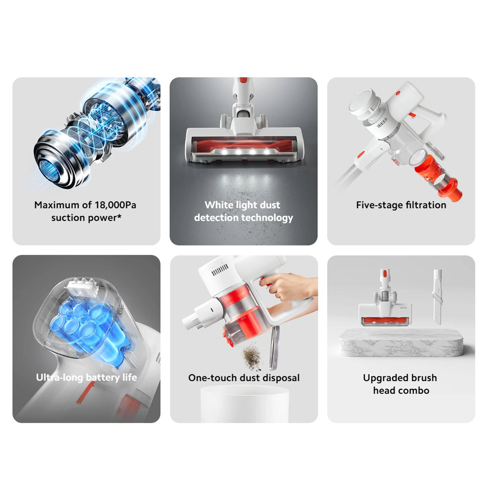 xiaomi vacuum cleaner G20 lite دارای قدرت مکشی معادل ۱۸,۰۰۰ پاسکال است. این سطح از قدرت مکش به شما امکان می ‌دهد تا حتی ذرات ریز و سخت‌ ترین آلودگی‌ ها را از انواع سطوح مختلف جمع‌ آوری کنید. قدرت مکش بالا برای تمیزکاری عمیق و از بین بردن گرد و غبار، موی حیوانات خانگی، خرده‌ ریزها و سایر آلاینده ‌ها از روی فرش‌ ها، مبلمان و سطوح سخت بسیار مناسب است.