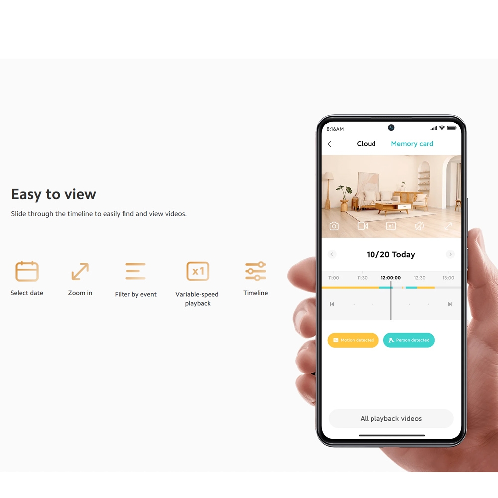 انتخاب تاریخ: شما می توانید تاریخ مورد نظر خود را انتخاب کنید تا ویدئوهای ضبط شده در آن تاریخ را مشاهده کنید. این ویژگی به شما کمک میکند تا به سرعت ویدئوهای مربوط به روزهای خاص را پیدا کنید. - فیلتر بر اساس رویداد: با استفاده از فیلتر بر اساس رویداد، میتوانید ویدئوها را بر اساس نوع رویدادهای ضبط شده مرتب کنید. این ویژگی به شما امکان می دهد تا به سرعت ویدئوهای مربوط به رویدادهای خاص مانند تشخیص حرکت یا تشخیص انسان را پیدا کنید.