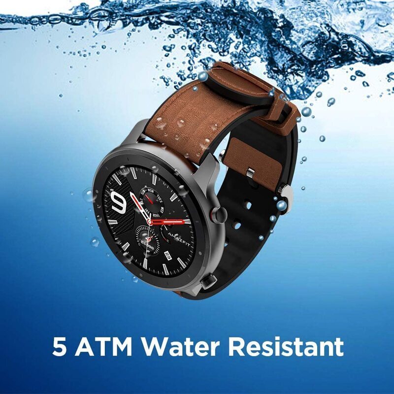 همانطور که پیش از این گفته شد ساعت هوشمند آمازفیت GTR میتواند فعالیت های شنای شما هم ردیابی کند. در نتیجه این ساعت دارای استاندارد ضدآب ۵ATM است که میتواند شما را تا ۵۰ متر زیر آب همراهی کند.