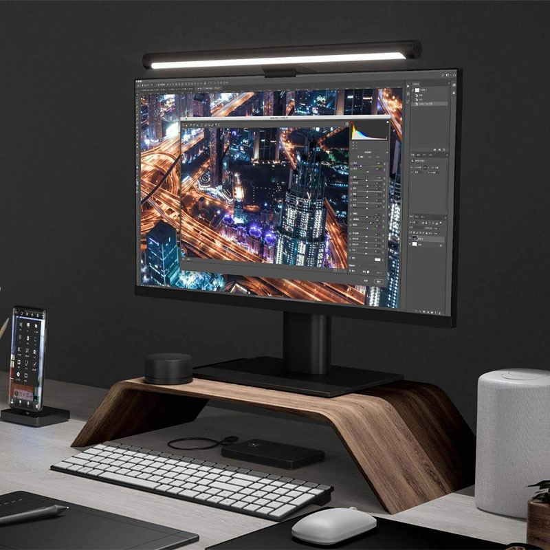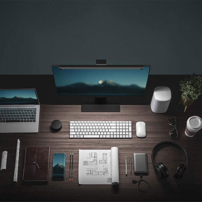 لامپ میزکار شیائومی Mi Light Bar توسط یک گیره به بالای مانتیور وصل میشود و به میز کار میتابد. این طراحی علاوه بر کارایی جلوی شلوغ شدن میز را هم گرفته و فضای کمی اشغال میکند. این لامپ دارای 80 دانه LED با زاویه 110 درجه است.
