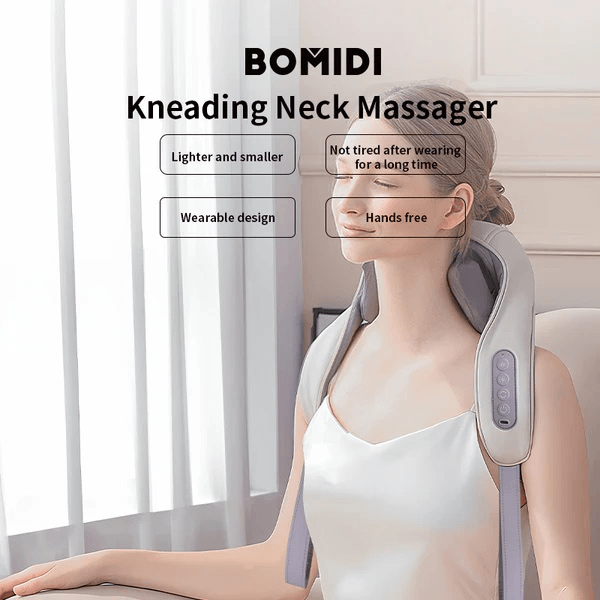 ماساژور گردن و شانه ی Bomidi MP2 با طراحی U شکل کاملاً به گردن و شانهها میچسبد و بندهای قابل تنظیم آن امکان فیکس شدن دستگاه را روی بدن فراهم میکنند. این طراحی ارگونومیک کمک میکند تا در هر حالتی که هستید، دستگاه راحت و ثابت بماند و یک تجربه بیدردسر از ماساژ داشته باشید.
