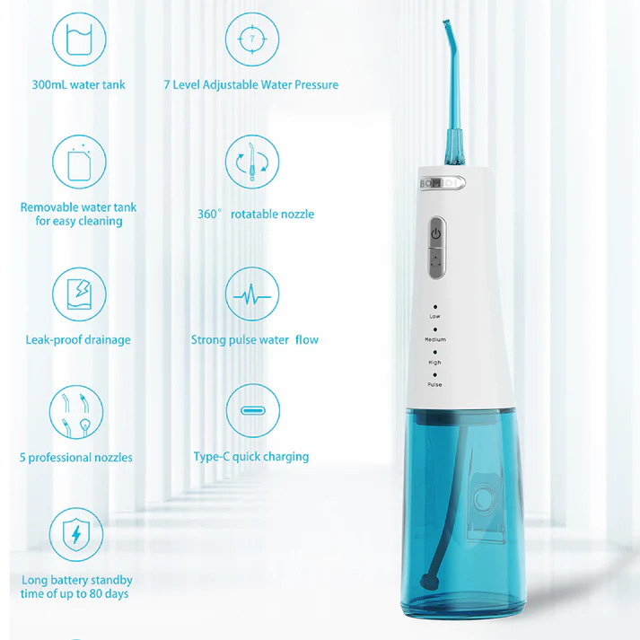 واترجت های دندانی می توانند باکتری هایی که در اعماق لثه ها هستند را به بیرون رانده و از بین ببرند که این ویژگی در دستگاه های دیگر پاک کننده دندان و لثه ها دیده نمی شود. واتر جت قابل شارژر Oral Irrigator D3 Pro BOMIDI با مخزن آب 300 میلی لیتری برای شستشوی بهتر دهان و دندان طراحی شده است.