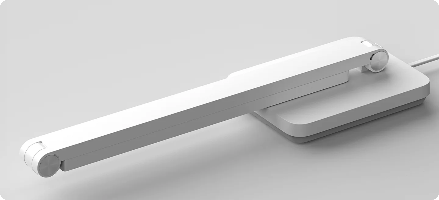 روی پایه این چراغ مطالعه به اندازه جمع و جور آن همچنین یک دکمه لمسی مقعر دیده می شود که به کمک آن نه تنها میتوانید چراغ را روشن کنید، بلکه اگر آن را طولانی فشار دهید نورپردازی را در ۳ سطح مختلف تنظیم کنید. به عبارت دیگر نور تمام سطح میز را به صورت ملایم میپوشاند تا زمان نوشتن یا طراحی چشمان شما خسته نشود.