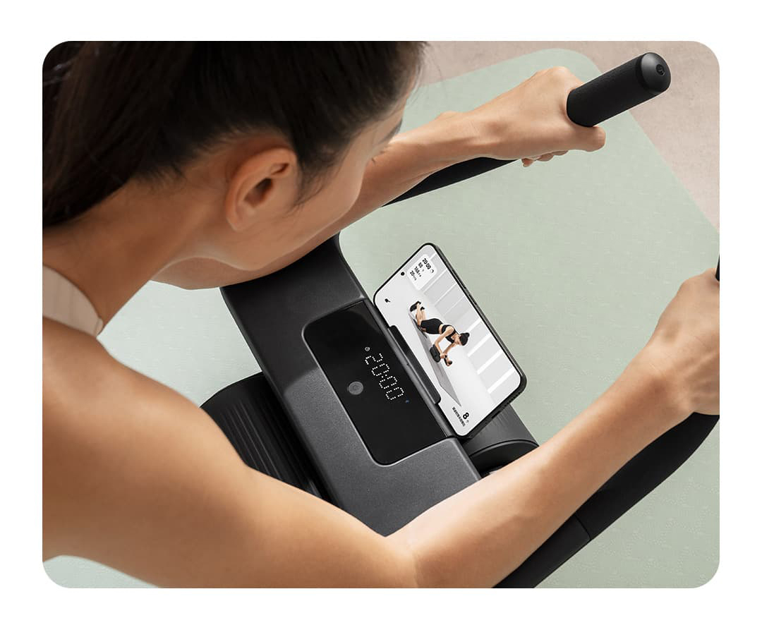 در قسمت جلوی این دستگاه یک صفحه نمایش LED مخفی قرار دارد که در حین تمرین اطلاعات مهم مثل تعداد تکرار، زمان و… را به صورت واضح و لحظهای نشان میدهد. این ویژگی کمک میکند بدون نیاز به اپلیکیشن در لحظه دادههای تمرین را مشاهده کنید.