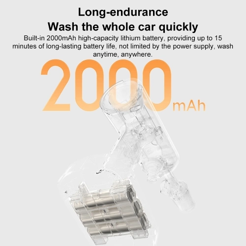 کارواش شیائومی Xiaomi Mijia Wireless Car MJXCJ002QW دارای باتری لیتیوم یونی با ظرفیت 2000 میلی آمپر بوده که قابل شارژ توسط درگاه تایپ سی است. حالت شارژری دستگاه کارواش کمک میکند تا شما در مکان های مختلف که حتی از آب هم به دور هستید بتوانید از آن برای شست و شو و سایر مصارف استفاده کنید.