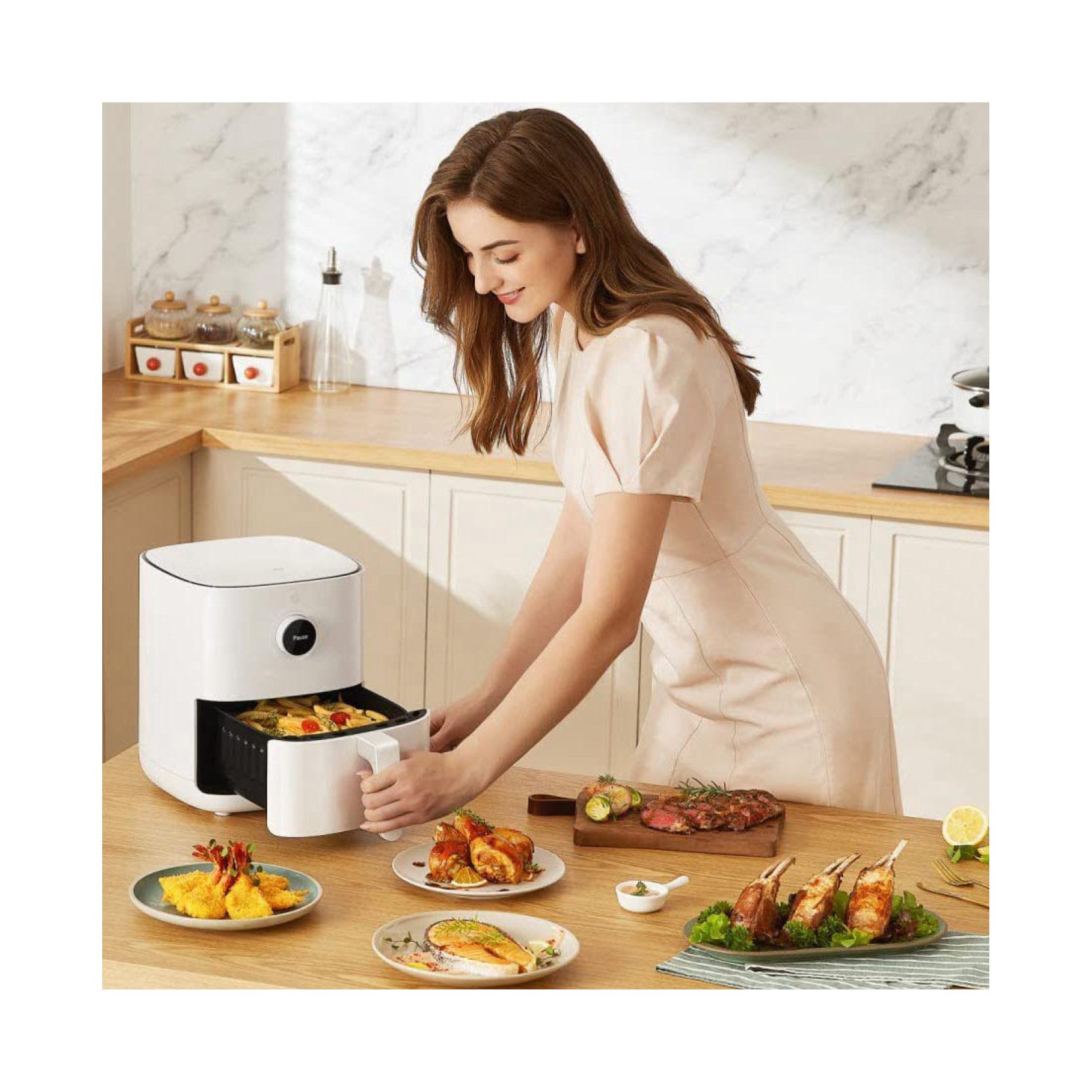بیش از ۱۰۰ دستور پخت در اپلیکیشن پشتیبانی از حالت پخت سفارشی چربی اضافی فیلتر شده در پایان کار میتوانید جمع آوری کنید چرخش هوای ۳۶۰ درجه برای پخت بهتر غذا دارای پوشش نچسب دارای دریچه های خنک کننده دارای گریل استیل قابلیت شستشوی اجزای سرخ کن در ماشین ظرفشویی قابلیت یادآوری برگرداندن غذا هنگام پخت هنگام بیرون کشیدن محفظه سرخ کن در حین پخت، عملیات به طور اتوماتیک متوقف و با جا زدن مجدد آن عملیات بدون نیاز به تنظیمات مجدد از سر گرفته میشود