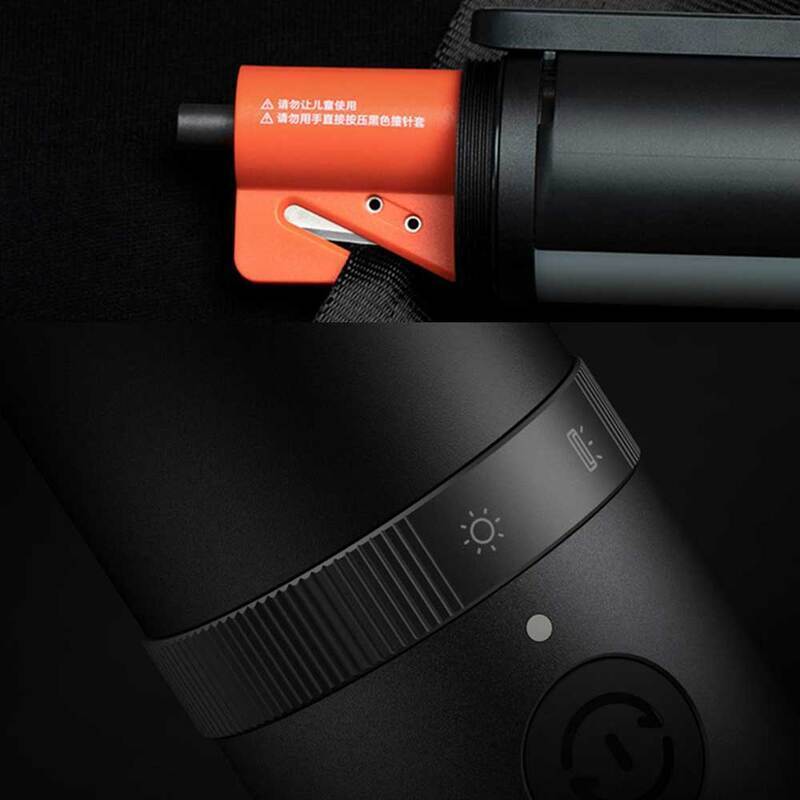 چراغ قوه چند کاره میجیا دارای یک تیغه برای برش کمربند ایمنی و یک چکش پنجره شکن است. همچنین میتوان با فشردن یک دکمه چراغ اضطراری را روشن کرد و از چراغهای جانبی آن در شرایط مختلف استفاده نمود. این دستگاه در مواقع اضطراری مفید است، و میتوان از آن برای قطع کمربند ایمنی یا شکستن پنجره استفاده کرد. این چراغ قوه دارای ریل کشویی چرخان و امکان تنظیم زاویه گسترده است. همچنین از اتصال مغناطیسی پشتیبانی میکند و برای چسبیدن به سطوح فلزی مناسب است.