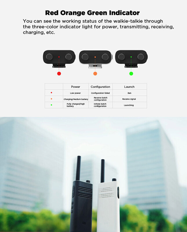 این واکی تاکی امکان برقراری ارتباط موثر و با کیفیت را در مسافت 1 تا 5 کیلومتری میسر می‌کند. قدرت انتقال سیگنال در این واکی تاکی شیائومی 5 وات و حساسیت گیرندگی آن 122- دسی‌بل است. محدوده فرکانسی پوشش داده شده توسط واکی تاکی 400 تا 470 مگاهرتز است.