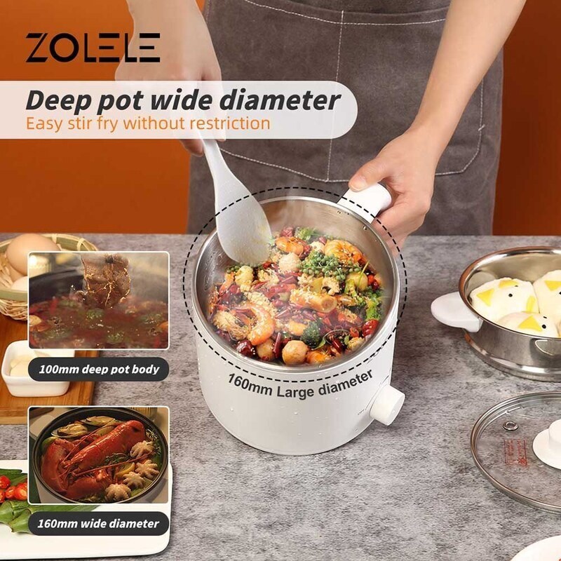 قابلمه برقی چند منظوره Zolele ZC301 – قابلمه ای با حرارت سریع با فولاد ضد زنگ 304 سازگار با مواد غذایی برای تمیز کردن و نگهداری آسان بدون دردسر، مناسب برای بخارپز کردن، مغز پخت کردن، جوشاندن انواع پخت و پز برای رضایت معده شما.